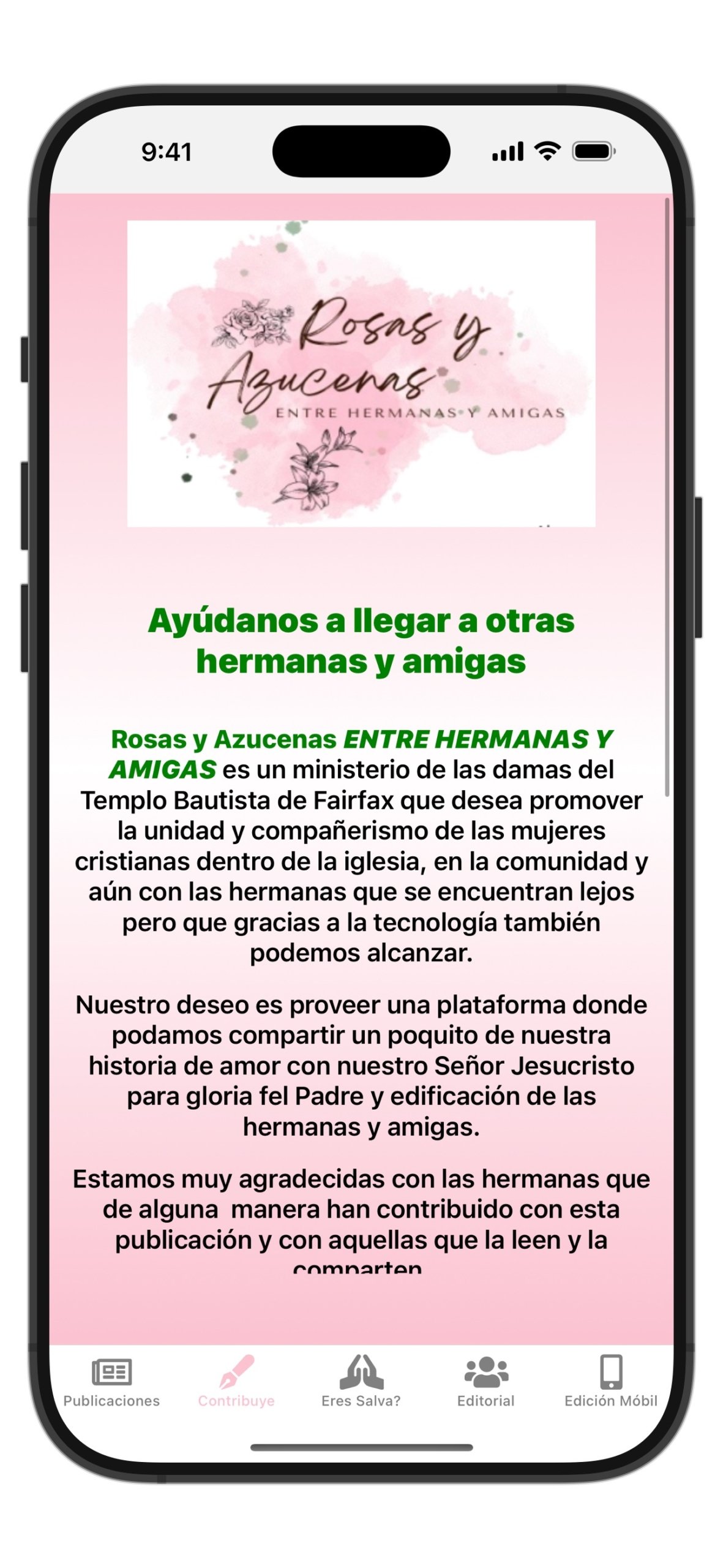 Bienvenidos a la pagina de soporte para la aplicacion de Rosas y Azucenas. Esta pagina incluye una descripción de las funciones de la aplicación y una area de preguntas mas frecuentes acerca de como funciona el app, y formas de contacto para preguntas y soporte técnico.