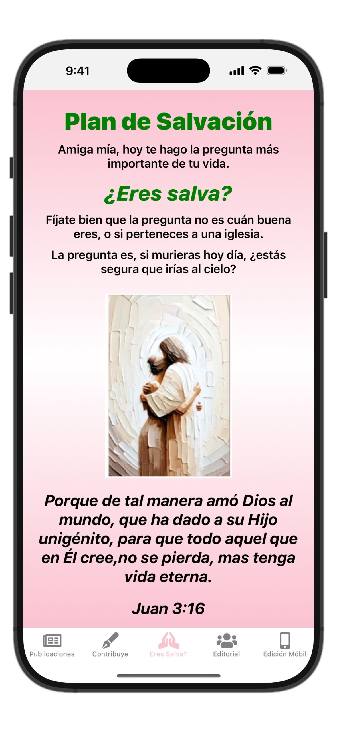 Una manera personal de compartir el mensaje del evangelio, invitando a las usuarias a reflexionar sobre su vida espiritual y aceptar el regalo de la salvación.